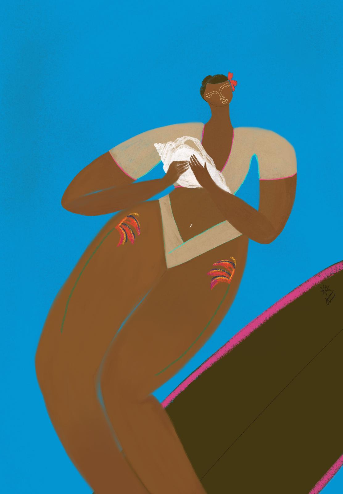 Je suis artiste visuelle, peintre et illustratrice. Mon travail explore différents médiums, entre peinture, sculpture, broderie et mixmedia, pour créer des univers féminins inspirés par la mer, entre le portrait et l’abstraction.